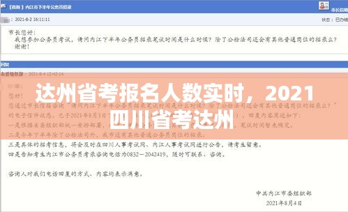 随着我国公务员考试的日益临近,各地省考报名情况也成为了广大考生关注的焦点。达州作为四川省的一个重要城市,其省考报名人数的实时动态更是备受瞩目。本文将为您实时更新达州省考报名人数的最新情况,帮助考生及时了解报名进度。
