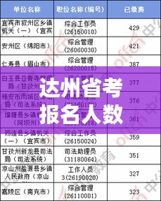 为了方便考生了解达州省考报名人数的实时动态,以下将提供部分热门岗位的报名人数统计情况: