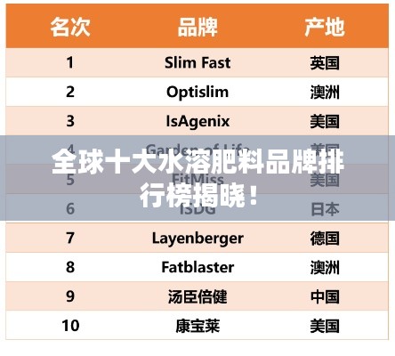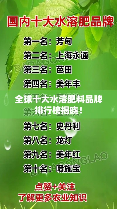 随着农业科技的不断进步,水溶肥料在现代农业生产中的应用越来越广泛,本文为您介绍世界十大水溶肥料排名,帮助您了解行业内领先的产品,为您的农业生产提供有力支持。