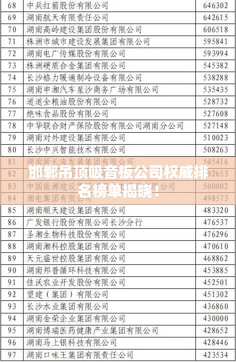 随着建筑行业的快速发展,吊顶吸音板在各类建筑物中的应用越来越广泛,邯郸地区作为华北地区的重要城市,拥有众多的吊顶吸音板公司,本文将对邯郸地区的吊顶吸音板公司进行排名介绍。