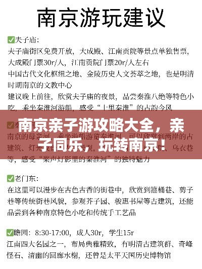 南京,这座历史悠久的城市,不仅拥有丰富的文化遗产,同时也是亲子旅游的绝佳选择,孩子们可以亲近自然、感受历史、体验科技,全家共享美好时光,以下是一份南京亲子旅游攻略,帮助您规划愉快的旅程。