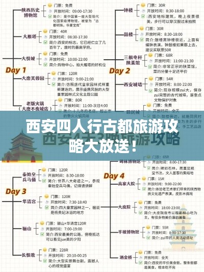 古都西安,以其深厚的历史底蕴、丰富的文化景观和美食诱惑,吸引着无数旅行者的目光,如果你正计划带着三五知己一同前往西安,那么这篇旅游攻略图将为你提供详尽的旅行指南,让你的四人行更加轻松愉快。