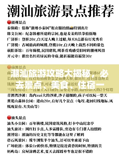 潮汕地区,位于中国东南沿海,是一个充满历史底蕴和自然风光的地方,这里既有古老的建筑和文化遗产,又有丰富的美食和独特的民俗活动,本篇文章将为您带来一份详尽的潮汕旅游攻略,带您领略这片土地的独特魅力。