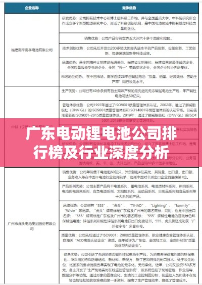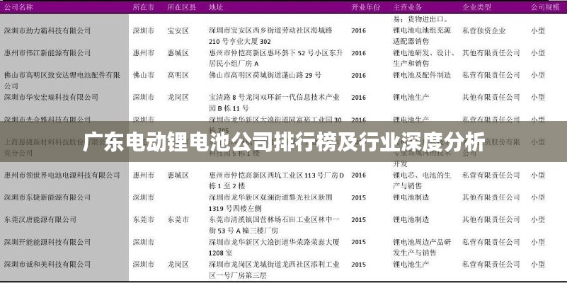 随着新能源市场的蓬勃发展,电动锂电池产业已成为国内外关注的焦点,广东省作为我国经济发展最活跃的地区之一,其电动锂电池产业亦呈现出蓬勃生机,本文将探讨广东电动锂电池公司的排名及相关行业分析。