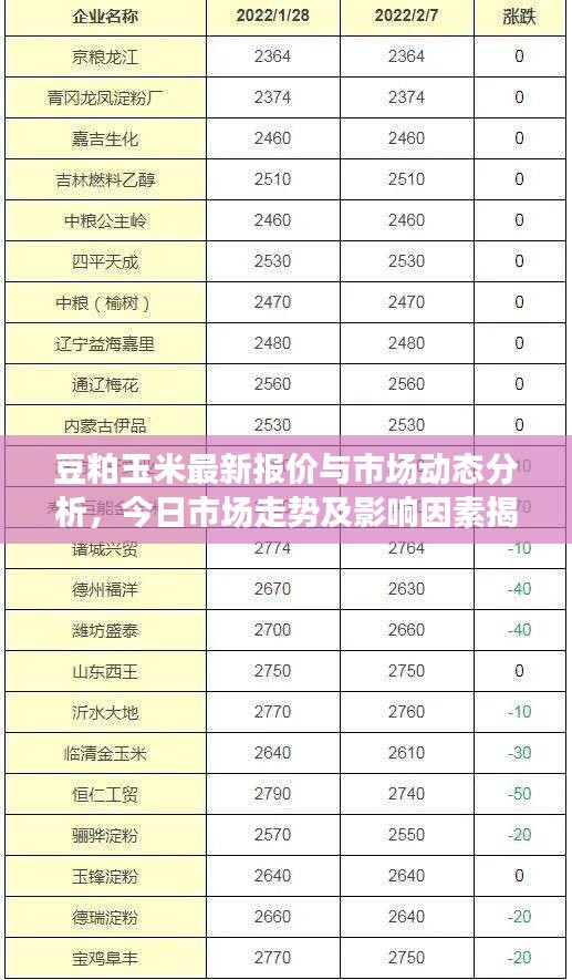 随着农业市场的不断发展,豆粕和玉米作为重要的农产品,其价格变化一直备受关注,本文将对今日豆粕玉米的报价进行介绍,并分析其市场动态及影响因素。