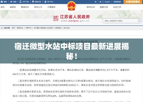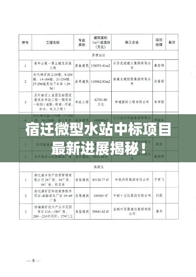 随着国家对于水利建设的重视与日俱增,宿迁市的一项微型水站中标项目成为了众人关注的焦点,本文将围绕这一主题,为您详细解读宿迁微型水站中标项目的最新动态。