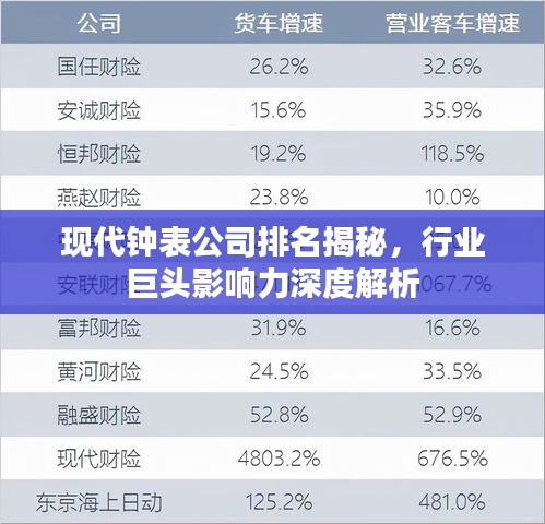 钟表作为时间的记录者和生活的伴侣,一直是人们生活中不可或缺的一部分,随着科技的进步和时尚潮流的不断演变,现代钟表行业已经发展成为一个多元化、高端化的市场,本文将探讨现代钟表公司的排名及其影响力,为您揭示钟表行业的最新动态和发展趋势。