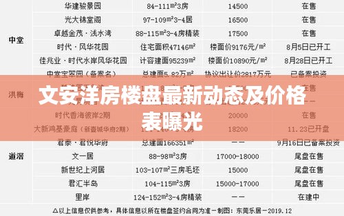 随着城市的发展与繁荣,房地产市场日新月异,对于购房者来说,了解最新的房地产信息尤为重要,本文将为您详细介绍文安洋房楼盘的最新价格表及相关动态。
