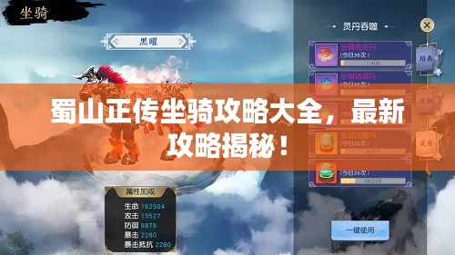 在蜀山正传这款游戏中,坐骑是玩家提升实力与效率的重要工具,本文将为大家带来关于蜀山正传坐骑的最新攻略,帮助大家了解如何获取、培养以及使用坐骑,从而在游戏中取得更好的成绩。