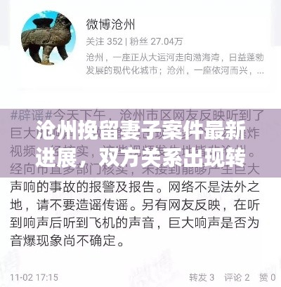 关于沧州挽留妻子案件引起了社会各界的广泛关注,这起案件涉及到家庭矛盾、感情纠纷以及法律等多个方面,引发了公众的广泛讨论和关注,本文将为大家介绍这起案件的最新情况。