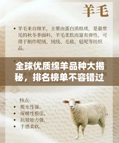 绵羊是畜牧业中的重要组成部分,因其肉质、毛质和适应性等特点,世界各地均有养殖,在众多绵羊品种中,有一些因其独特的优势和特点而被誉为优良品种,本文将探讨世界优良绵羊品种排名,介绍各品种的独特之处。