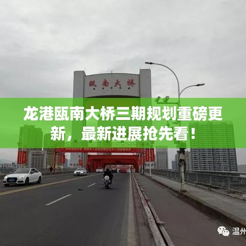 目前,龙港瓯南大桥三期工程已进入规划阶段,各项前期工作正在紧张有序地进行,预计在未来几个月内,工程将正式开工建设。