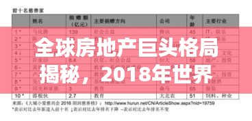 随着全球经济的不断发展和城市化进程的加速,房地产行业持续繁荣,各大房企也在激烈的市场竞争中不断壮大,在2018年度,全球房企的排名情况如何呢?本文将为您揭示世界房企排名2018,带您了解全球房地产行业的巨头格局。