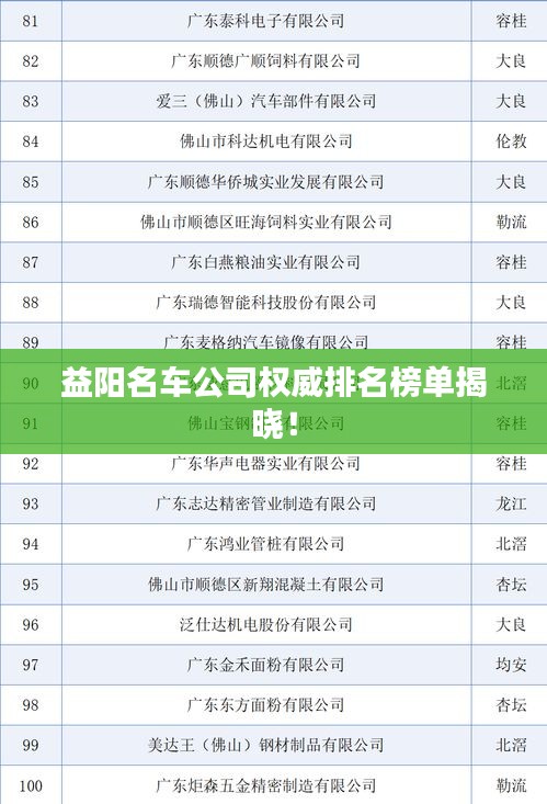 随着汽车市场的繁荣发展,益阳市的名车公司如雨后春笋般涌现,本文将为您详细介绍益阳名车公司的排名,带您了解这些企业的风采。