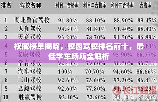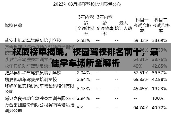 转载请注明来自马鞍山同杰良,本文标题:《权威榜单揭晓,校园驾校排名前十,最佳学车场所全解析》