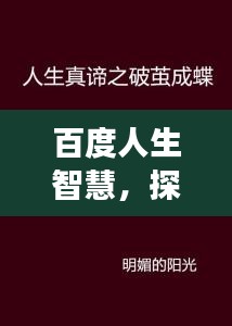 随着互联网的普及和科技的飞速发展,我们每天都在面对海量的信息和知识,在这样一个时代背景下,“百度一下”已经成为我们获取知识的重要途径之一,除了搜索引擎的基本功能外,我们还可以从“百度”中汲取更深层次的人生智慧,探索人生的真谛与智慧之路。