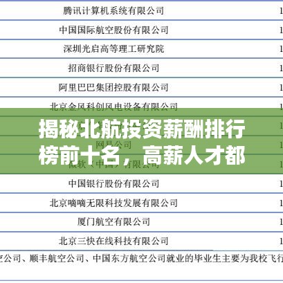 随着科技产业的飞速发展,投资行业也日渐繁荣,北京航空航天大学(简称北航)作为我国顶尖的高等学府之一,其投资领域的毕业生备受瞩目,本文将为您揭晓北航投资薪酬排名前十名的相关信息,带您了解这些优秀人才的成长轨迹和成功秘诀。