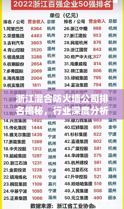 随着信息技术的飞速发展,网络安全问题日益受到企业和个人的关注,在这样的背景下,防火墙作为网络安全的重要防线,其市场需求不断增长,浙江省作为国内信息技术发展的前沿地区,拥有众多优秀的混合防火墙公司,本文将探讨浙江混合防火墙公司的排名及相关行业分析。
