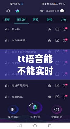 实时变声是tt语音的一项特色功能,它允许用户在通话或直播过程中实时改变自己的声音。这项功能可以通过应用内置的变声库来实现,用户可以选择不同的声音效果,如女声、低沉声、儿童声等,甚至可以自定义声音效果。