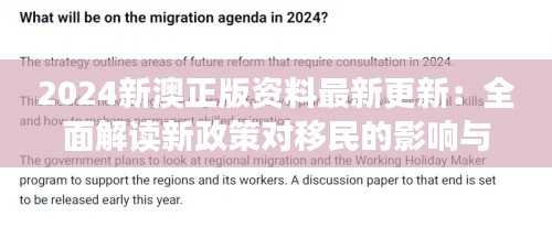 随着全球化的深入发展,国家间的人口流动越来越频繁。2024年,新澳地区的最新移民政策成为人们关注的焦点。本文旨在对新澳地区最新发布的移民政策进行详细解读,分析新政策对移民的影响和带来的机遇,为未来移民者提供参考和借鉴。