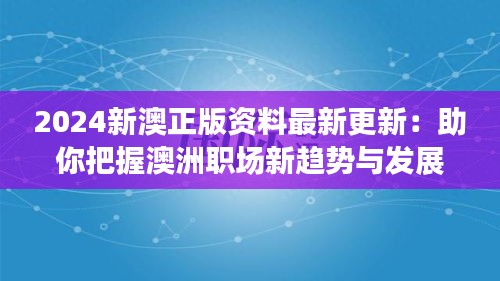 2024年,澳大利亚职场正在经历深刻的变化,随着技术的快速发展和经济全球化的影响,职场趋势和发展方向正变得更加多元化和复杂化。了解这些变化对于把握职场先机,适应新环境至关重要。本资料旨在为澳大利亚职场人士提供最新的趋势分析和发展指导,帮助读者深入了解2024年澳大利亚职场的新动态。