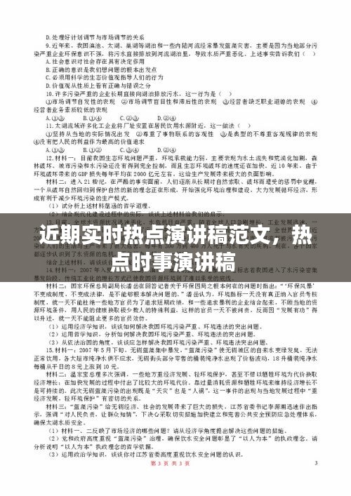 尊敬的各位来宾、女士们、先生们: 大家好!今天,我们聚集在这里,共同探讨近期实时热点话题。在这个信息爆炸的时代,热点事件如同流星划过夜空,短暂而耀眼。今天,我将为大家带来一篇关于近期实时热点的演讲稿,希望通过这篇演讲,我们能够更深入地理解这些事件背后的意义,以及它们对我们生活的影响。
