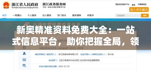 在这个信息爆炸的时代,获取精准、高质量的资料对于个人成长、学术研究甚至是事业发展都至关重要。"新奥精准资料免费大全:一站式信息平台,助你把握全局,领先一步"便是这样一个专注于提供精准资料的平台,它汇聚了海量的文献、数据、研究报告、行业分析等多种形式的资料,旨在为用户提供一站式的信息获取服务,帮助用户获取所需的知识,从而在各个领域中获得竞争优势。