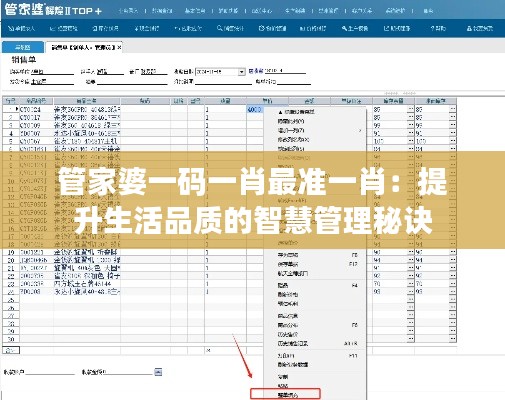 管家婆一码一肖:提升生活品质的智慧管理秘诀