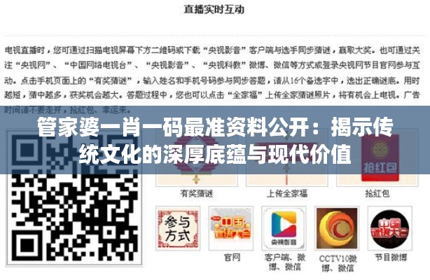 “管家婆一肖一码最准资料公开:揭示传统文化的深厚底蕴与现代价值”是一项专注于中国传统文化的研究项目,旨在通过深入挖掘和公开一系列珍贵的文献资料,展现古人智慧的结晶及其对当代社会发展的重要影响。本项目涵盖的内容广泛,从古代的哲学思想、历史变迁到文学艺术、科技发明等多个方面,力图全面揭示传统文化的内涵及其在现代社会中的新体现和新价值。