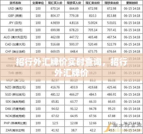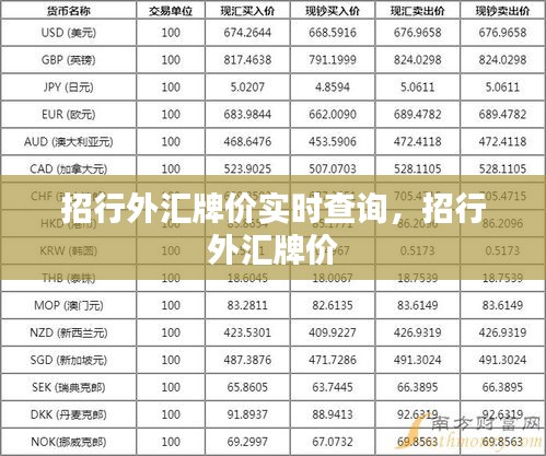 招行外汇牌价实时查询服务是招行网上银行、手机银行等电子渠道提供的一项重要功能。通过这一服务,客户可以轻松获取包括美元、欧元、日元、英镑等多种货币的实时汇率信息。