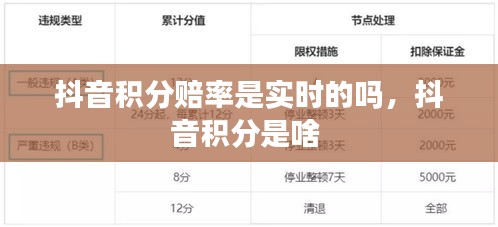 是的,抖音积分赔率是实时的。这意味着用户的积分和赔率会随着他们在平台上的活动而实时更新。以下是一些具体的例子来说明这一点: