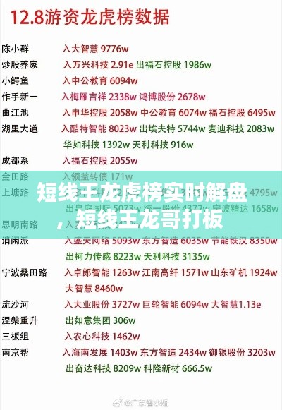 龙虎榜,顾名思义,是股市中实力强大的机构和个人投资者的集中展示。这些投资者在特定交易日内的买卖行为,往往能够对股价产生重大影响。短线王龙虎榜实时解盘,正是基于这一概念,通过分析龙虎榜数据,为投资者提供实时市场动态和交易策略。