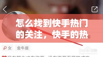要找到快手热门的关注,首先需要了解快手平台的热门趋势。快手作为一个短视频平台,其热门内容往往与当前的社会热点、流行文化、娱乐新闻等紧密相关。你可以通过以下几种方式来了解热门趋势: