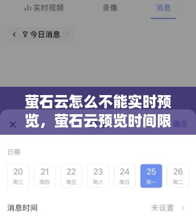 设备兼容性:萤石云支持多种设备和平台,但并非所有设备都能实现实时预览。设备兼容性问题也可能导致无法实时预览。