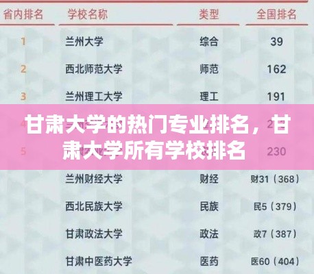 转载请注明来自马鞍山同杰良,本文标题:《甘肃大学的热门专业排名,甘肃大学所有学校排名 》
