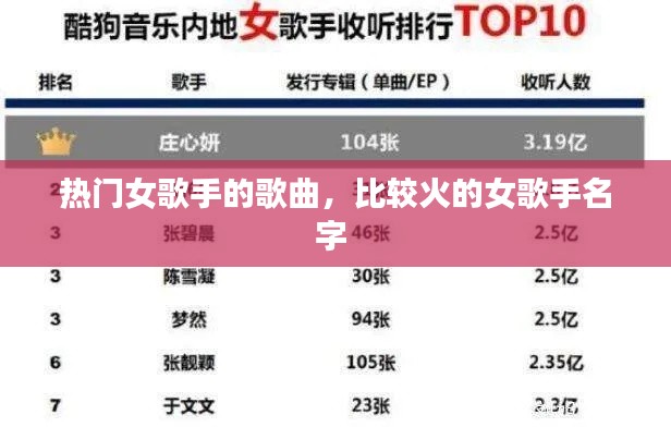 转载请注明来自马鞍山同杰良,本文标题:《热门女歌手的歌曲,比较火的女歌手名字 》