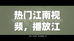 总之,这些热门的江南视频为我们打开了一扇通往江南的大门,让我们在屏幕前就能感受到江南的美丽与风情。如果你对江南有着浓厚的兴趣,不妨通过这些视频,提前领略一下那片诗意盎然的土地。