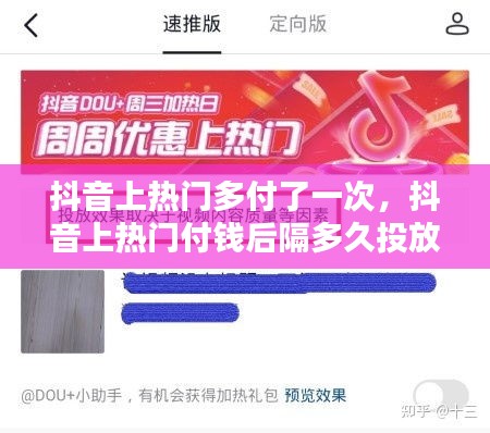在当今这个信息爆炸的时代,短视频平台抖音已经成为许多人生活中不可或缺的一部分。抖音以其独特的算法和丰富的内容吸引了大量用户。然而,近日一位抖音用户在尝试让自己的视频上热门时,却意外地多付了一次费用,引发了广泛关注和讨论。