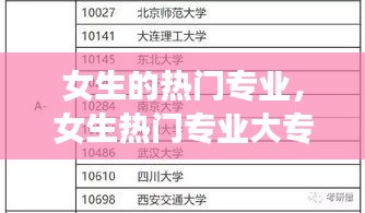 随着社会的发展和教育的普及,越来越多的女生选择追求自己的职业梦想。在众多专业领域中,有一些专业因其广阔的发展前景、良好的就业率和较高的社会认可度而成为女生的热门选择。本文将为您介绍一些当前女生热门的专业,帮助您更好地了解这些领域的特点和发展趋势。