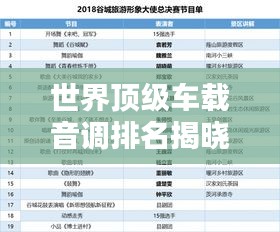 随着汽车产业的飞速发展,车载音响系统已成为衡量汽车舒适度的重要指标之一,音质优美、音效震撼的车载音响,不仅能提供愉悦的驾驶体验,还能在旅途中带来极致的享受,本文将为您揭晓世界顶级车载音调排名,带您领略车载音响的极致魅力。