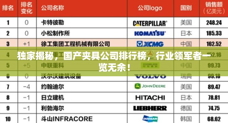 随着制造业的飞速发展,夹具行业作为关键配套产业,其市场需求不断增长,国产夹具公司在技术创新、产品质量和服务水平方面不断提升,逐渐赢得了市场的认可,本文将探讨国产夹具公司的排名及其发展现状,以供参考。