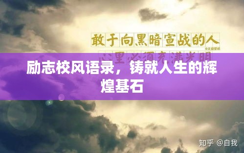 励志校风语录是铸就辉煌人生的基石,它激励我们追求卓越、勇敢面对困难、坚持梦想和实现目标,让我们共同践行励志校风语录,不断汲取力量,勇往直前,为铸就辉煌人生打下坚实的基础。