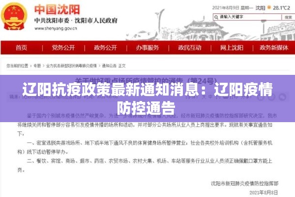 随着新冠病毒(COVID-19)疫情在全球范围内的持续蔓延,我国各地纷纷采取严格的防控措施以保障人民的生命安全和身体健康。辽阳市作为辽宁省的重要城市,积极响应国家号召,出台了最新的抗疫政策。以下是对辽阳市疫情防控政策最新通知的详细解读。