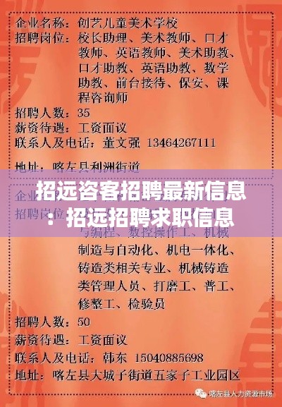 招远咨客招聘,隶属于我国知名的人力资源服务公司——招远集团。招远集团成立于1998年,总部位于我国东部沿海的山东省招远市。公司始终秉承“以人为本,服务至上”的经营理念,致力于为客户提供全方位的人力资源解决方案。经过多年的发展,招远集团已在全国范围内设立了多家分支机构,形成了覆盖全国的人力资源服务网络。