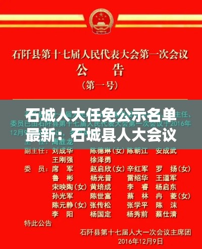 近日,石城市人民代表大会(以下简称“石城人大”)发布了最新的任免公示名单。本次任免涉及多个部门及单位,包括政府官员、企事业单位负责人等。以下是具体的任免信息。