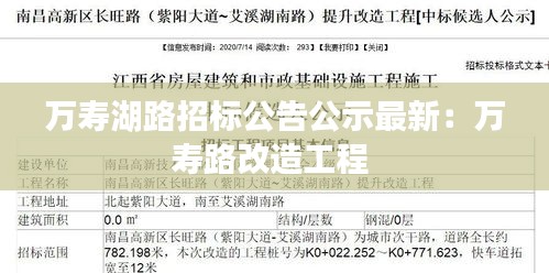 万寿湖路建设项目招标公告公示已正式发布,欢迎广大符合条件的施工单位踊跃参与。我们期待与您携手共建美好家园,共创辉煌未来。