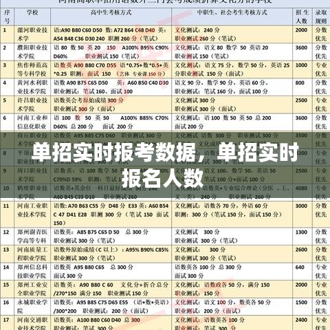 随着我国教育体制的不断改革,单招(单独招生)作为一种重要的招生方式,越来越受到广大学生的关注。单招实时报考数据,即指在单招报名期间,各高校招生报名系统的实时数据统计。这些数据对于考生、家长以及教育机构都具有重要的参考价值。