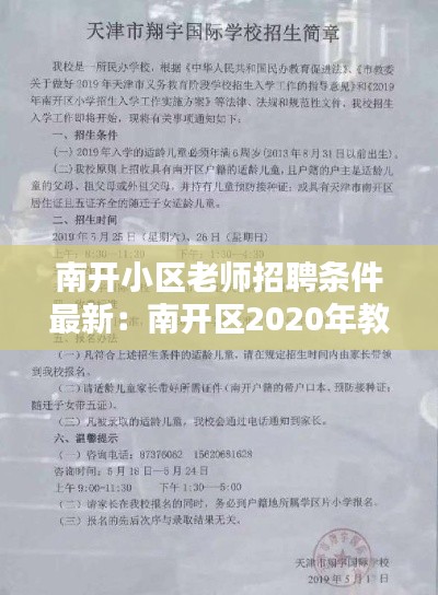 南开小区老师招聘工作旨在选拔一批优秀的教育人才,为区内学生提供优质教育服务。希望广大有意向的教师积极参与,共同为我国教育事业贡献力量。