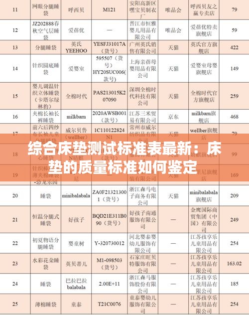 随着生活水平的提高,人们对睡眠质量的追求也越来越高。床垫作为影响睡眠质量的重要因素,其选择变得越来越受到消费者的关注。为了帮助消费者更好地了解床垫的品质,本文将详细介绍最新的综合床垫测试标准表。