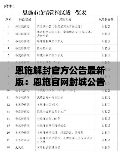 经过一段时间的严密防控,恩施市疫情防控形势持续向好。根据国家卫生健康委员会和湖北省疫情防控指挥部的最新指示精神,结合我市实际情况,经研究决定,现就恩施市解封有关事项公告如下: